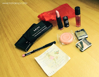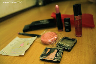 Ela me mandou de presente do sorteio: 1 Gloss da Avon ( com cheirinho de morango), 2 sombras unitárias da fenzza ( coisa mais pigmentada do mundo), 1 sabonete da avon naturals (super cheiroso) e 1 correntinha que eu esqueci de tirar foto, mas eu estou usando no vídeo, entao assistam! rs