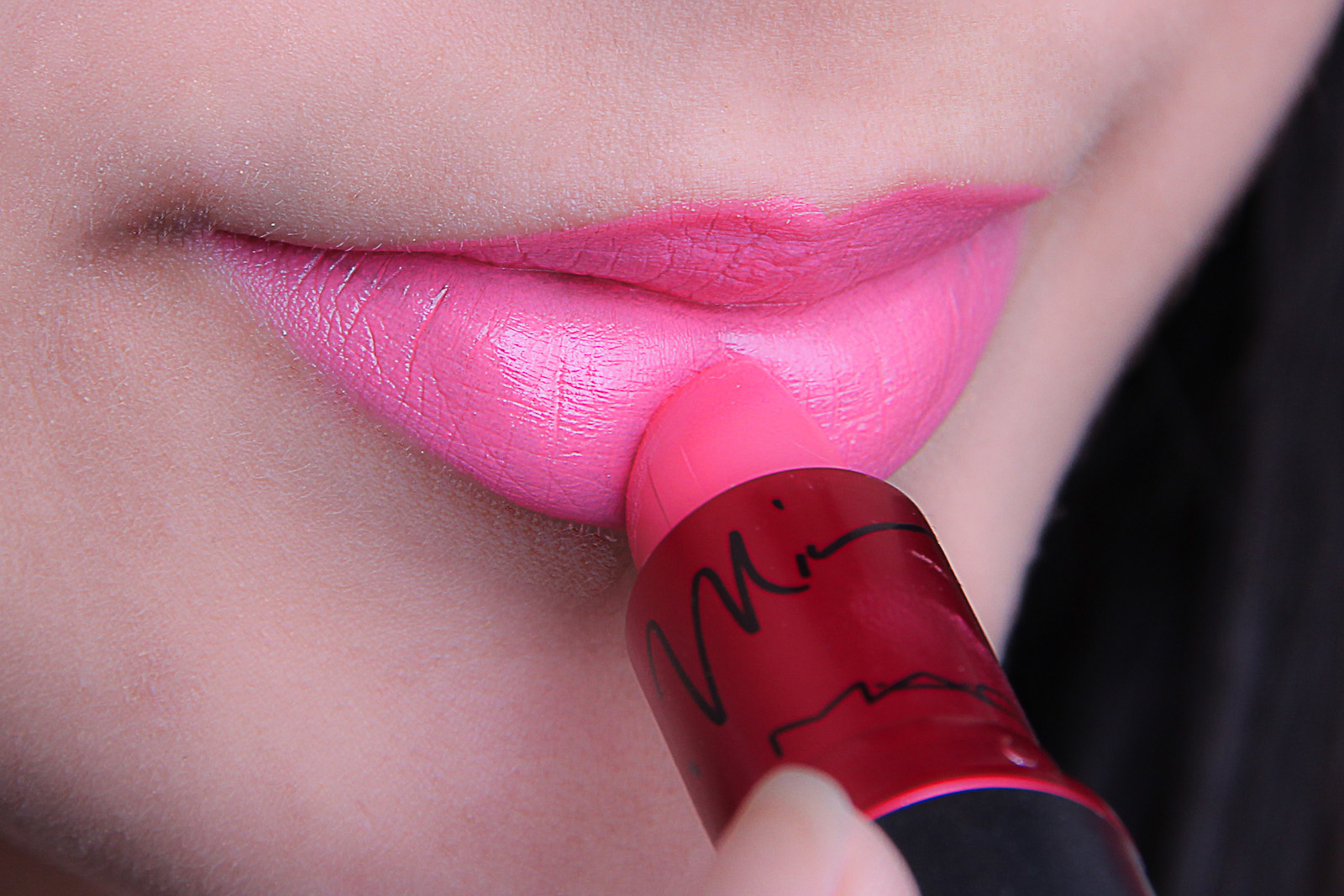 Vi uma review de uma americana e na foto, o batom dela parecia laranja G_G Ele é um rosa pink muito lindo! Ainda vou fazer um tutorial inspirada na maquiagem que a Nicki usou na campanha da MAC e vocês vão entender ainda mais a beleza desse batom! Ele tem acabamento “Satin” ou seja, pigmentado e cremoso na medida certa. Essa coleção também conta com um lip balm assinado pelo Ricky Martin que estou pensando em comprar também.