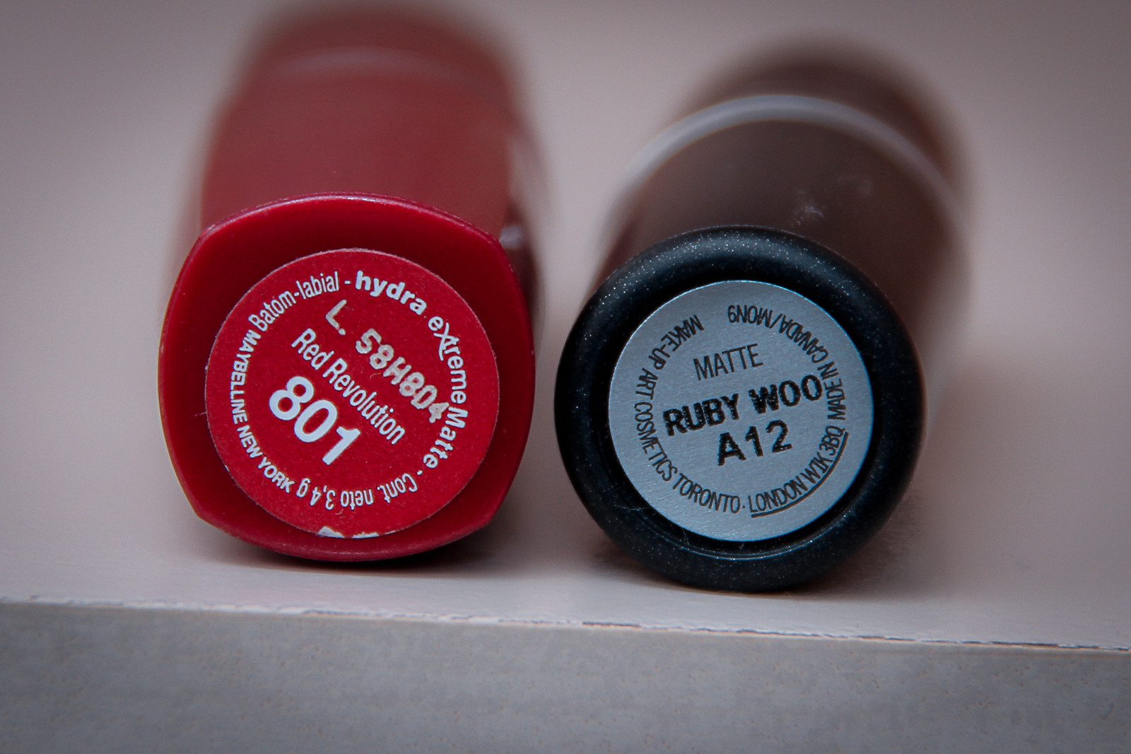 Oi meninas! Há um tempo atrás no twitter, uma seguidora fofa me perguntou se eu já tinha testado o batom Red Revolution da Maybelline. Até então eu nunca tinha ouvido falar do mesmo e ela me contou que se parecia muito com o Ruby Woo da MAC. Na época eu já tinha comprado o Ruby Woo e estava esperando chegar. No mesmo dia, fui na farmácia procurar o tal Red Revolution e encontrei. Já comecei gostando do preço (custou apenas R$13). Avisei a ela, que quando o meu Ruby Woo chegasse, eu faria a comparação e aqui estou eu! Vamos conferir?