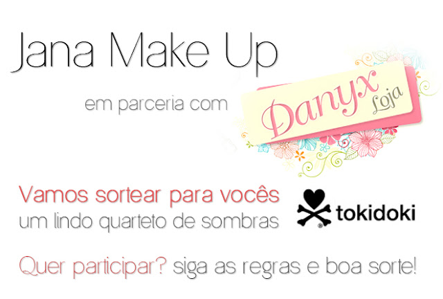 Twittar a seguinte frase: “Estou participando do #Sorteio da #JanaMakeUp @nemgosto e da @Danyx_Makeup e vou ganhar o lindo quarteto da Tokidoki! http://bit.ly/KKcDtk“