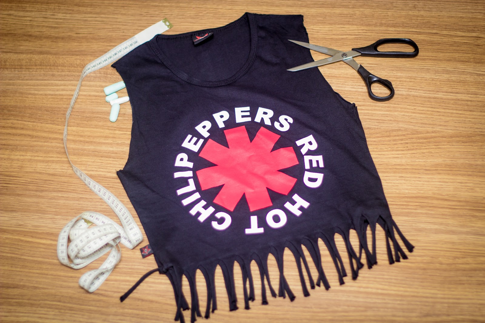 Oi amores, tudo bem? Desde que eu postei o vídeo de DIY do Rainbow Jeans (assista aqui) muita gente adorou este tipo de vídeo e pediu para que eu fizesse mais. Tenho muitas idéias de customização e pretendo realizá-las neste ano de 2013. Comprei essa t-shirt de banda (sim, eu amo rhcp) na praia, final de semana passado e paguei R$25 e na hora me passou mil idéias pela cabeça.