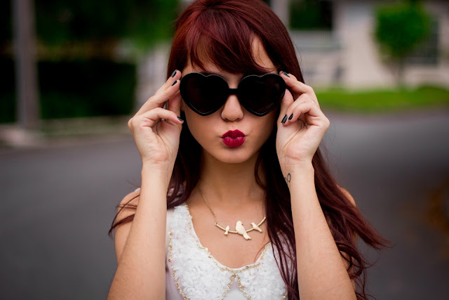 Eu usei: Vestido branco/rosa Love (Loja Lado B CLIQUE AQUI), Colar dourado de pássaros (Loja Lado B CLIQUE AQUI), Óculos preto de coração (Loja Lado B CLIQUE AQUI), Bolsa branca (Loja Lado B CLIQUE AQUI), Sapato (Renner).