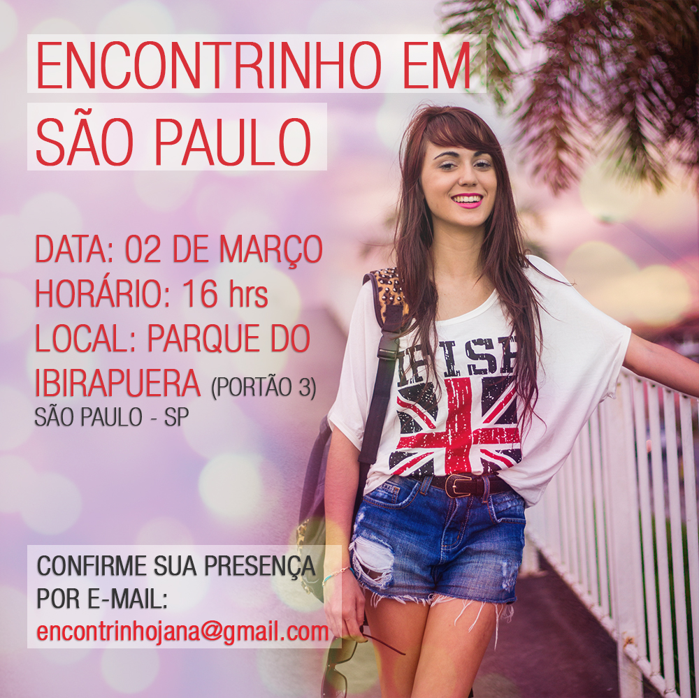 Oi amores, tudo bom? É isso mesmo que vocês estão lendo no título do post, enfim consegui marcar um encontrinho para as leitoras de São Paulo! Yupiiiii \o/ Já faz muito tempo que venho programando conhecer as leitoras de SP, mas sempre vou à trabalho e nunca dá tempo de organizar algo. Queria montar algo maior, um evento com música, coquetel e tudo o que vocês tem direito mas não conheço nada em São Paulo e tenho apenas 1 semana para organizar tudo. Estou muito feliz e orgulhosa de anunciar para vocês, o primeiro encontrinho em São Paulo neste sábado (02/03). Confira: