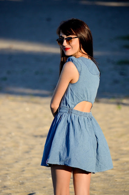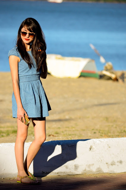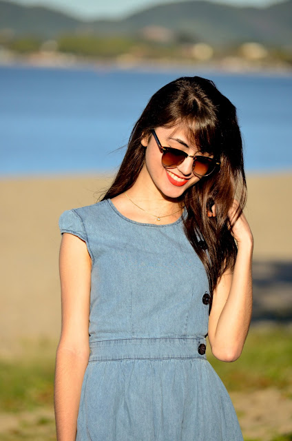 Eu Usei: Vestido Jeans (Rezzato), Rasteirinha (H&M), Batom (Perfect Red – NYX), Óculos (Modelo: Club Master)