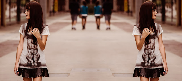 Adoro usar saias e vestidos, por isso estou aproveitando esses últimos dias antes do inverno rigoroso chegar para deixar as pernocas de fora! Optei pela t-shirt básica para deixar o look mais casual!