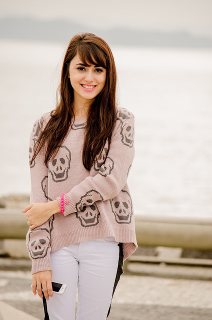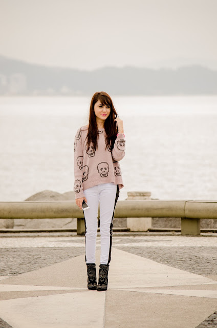 Eu Usei: Suéter Caveirinha (Blue Steel), Calça Jeans PB (Blue Steel), Pulseiras (Acessories), Bota (Via Marte).