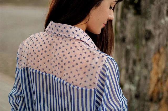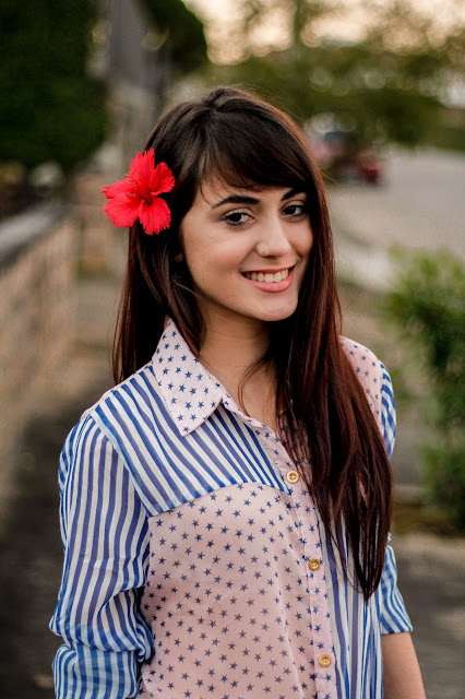 Eu Usei: Camisa Listras + Estrelas (By Pelle), Calça Branca (Zara) Scarpin (Bottero), Acessórios (Ludora Boutique).