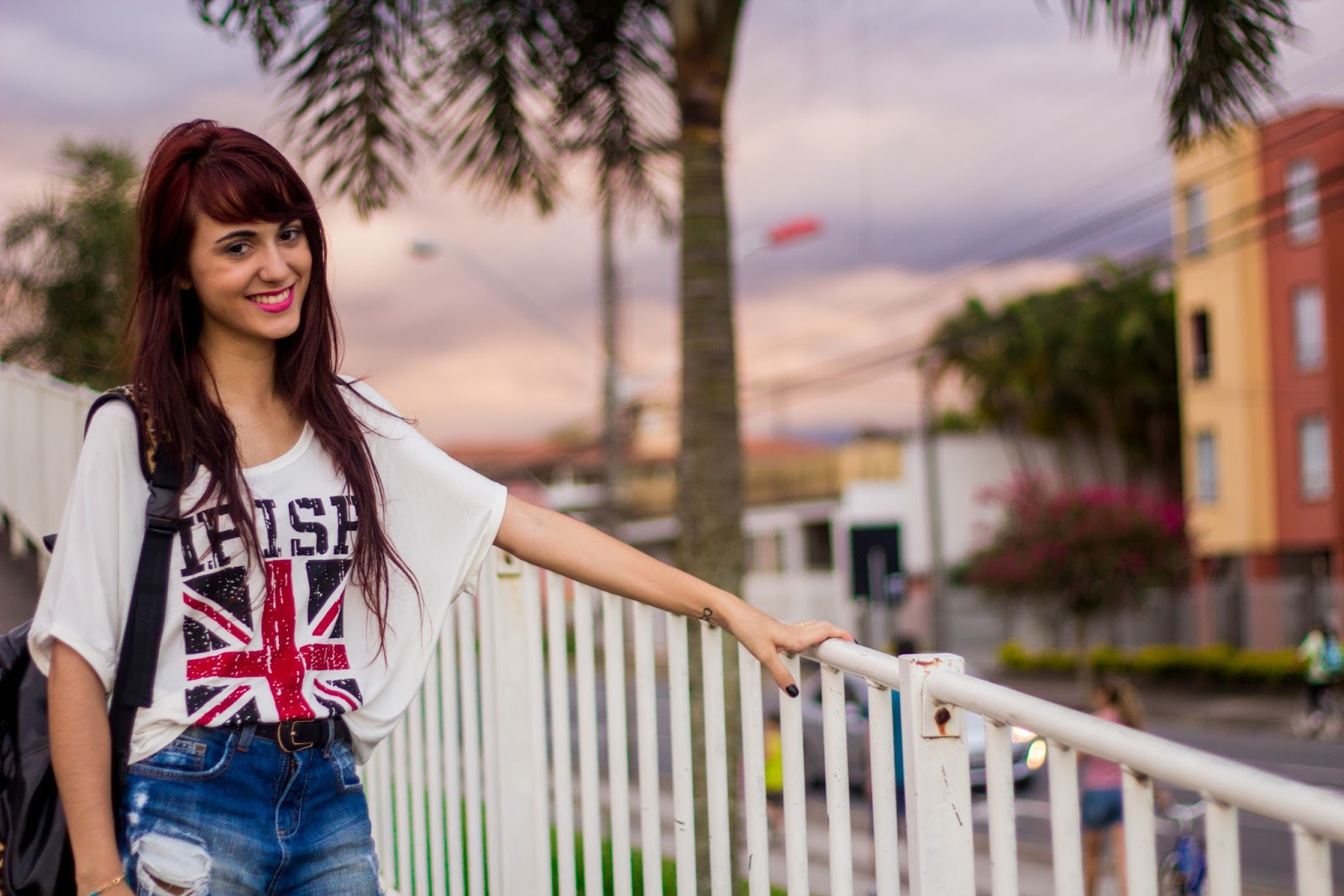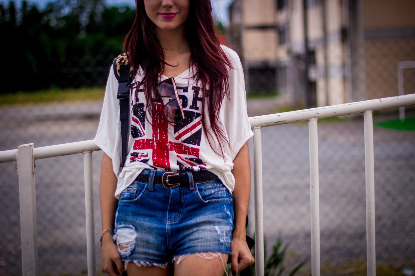 Eu usei: Camiseta bandeira da Inglaterra (Loja Lado B CLIQUE AQUI), Short Jeans boyfriend (Loja Moça Bonita, eu sei que uso muito esse short mas realmente ele combina com tudo! haha), Tênis (Vans), Pulseira do infinito (Loja Lado B CLIQUE AQUI), Óculos com strass (Loja Lado B CLIQUE AQUI), Cinto preto com brilhos (Charme Dalu CLIQUE AQUI), Mochila de couro com oncinha #todaschoradetãolinda (Loja Lado B CLIQUE AQUI).