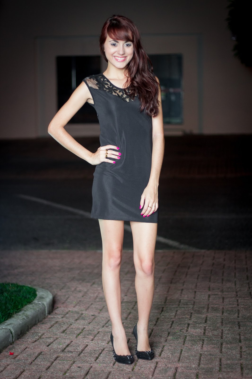 Este é um vestido preto tubinho super básico, o detalhe está nas flores com transparência nas costas e no colo. Nem preciso dizer que amo este scarpin preto de spikes né? Meu xodózinho! A make foi super discreta e apostei no cabelo ondulado pra sair à noite.