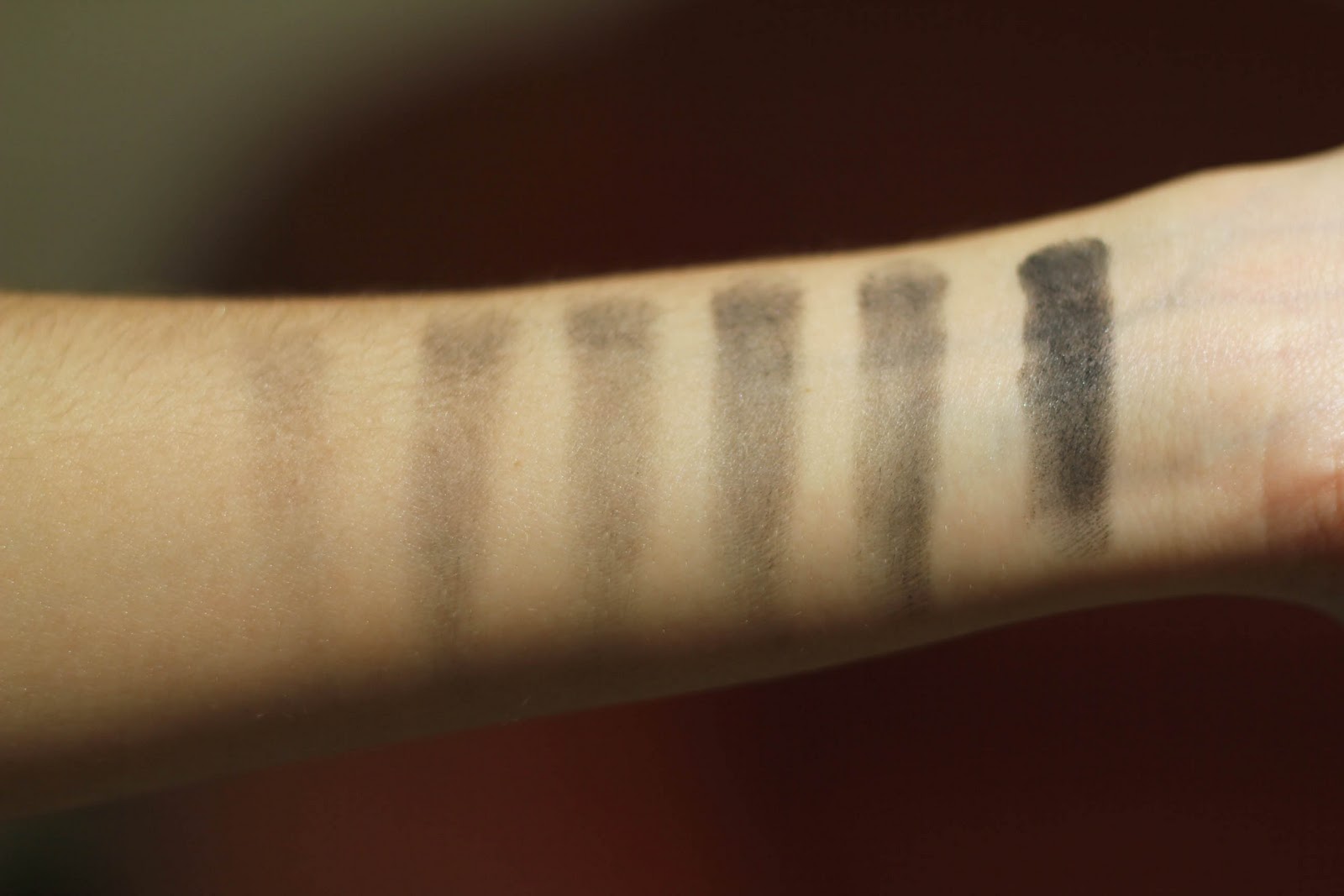 Nos swatchs o tom uva ficou meio parecido com o marrom, o uva é o menos pigmentado, provavelmente isso é proposital para que não aconteça da sombra ficar muito forte no lugar endevido..