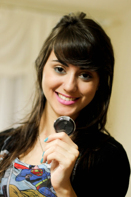 Ela não é uma sombra preta qualquer, dependendo da luz que você vê, os brilhos mudam de cor! Quando você aplica, não é como glitter, a sombra nos olhos fica preta, com leve shimer, bem suave. Eu realmente me impressionei com essa sombra, comprei só para testar, mas se as outras forem tão pigmentadas e bonitas quanto, com certeza vou querer mais, a durabilidade é ótima e super fácil de esfumar!