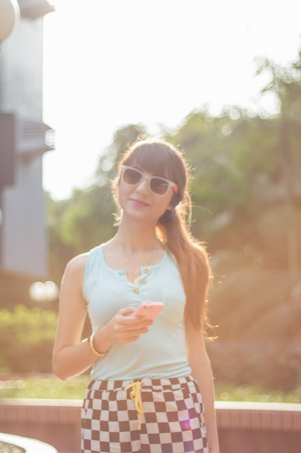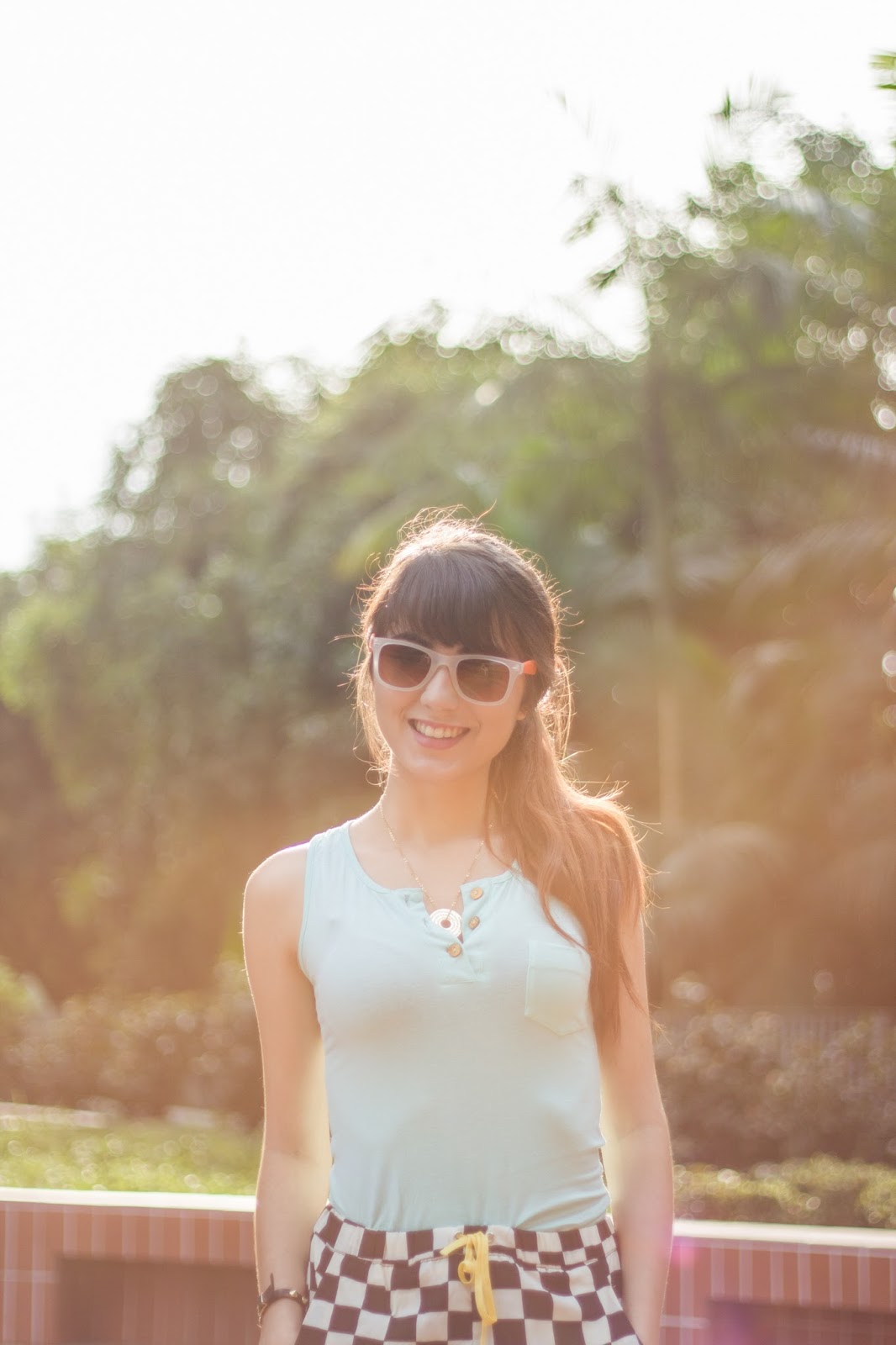 O dia estava super gostoso e o clima agradável, por isso optei pelo combo short quadriculado soltinho + regata candy color! Achei o resultado final colorido, divertido e mega confortável =)