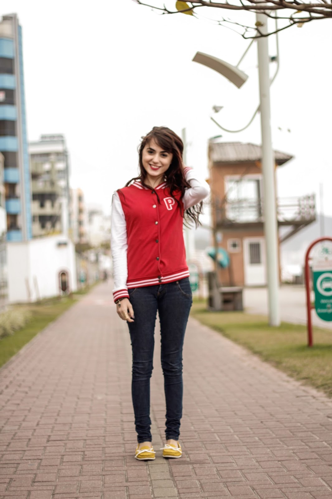 Como venta bastante em Floripa, optei por usar minha varsity jacket vermelha que todo mundo estava perguntando de onde era. Adoro esse estilo despojado da jaqueta e dá para montar vários looks legais com ela =)