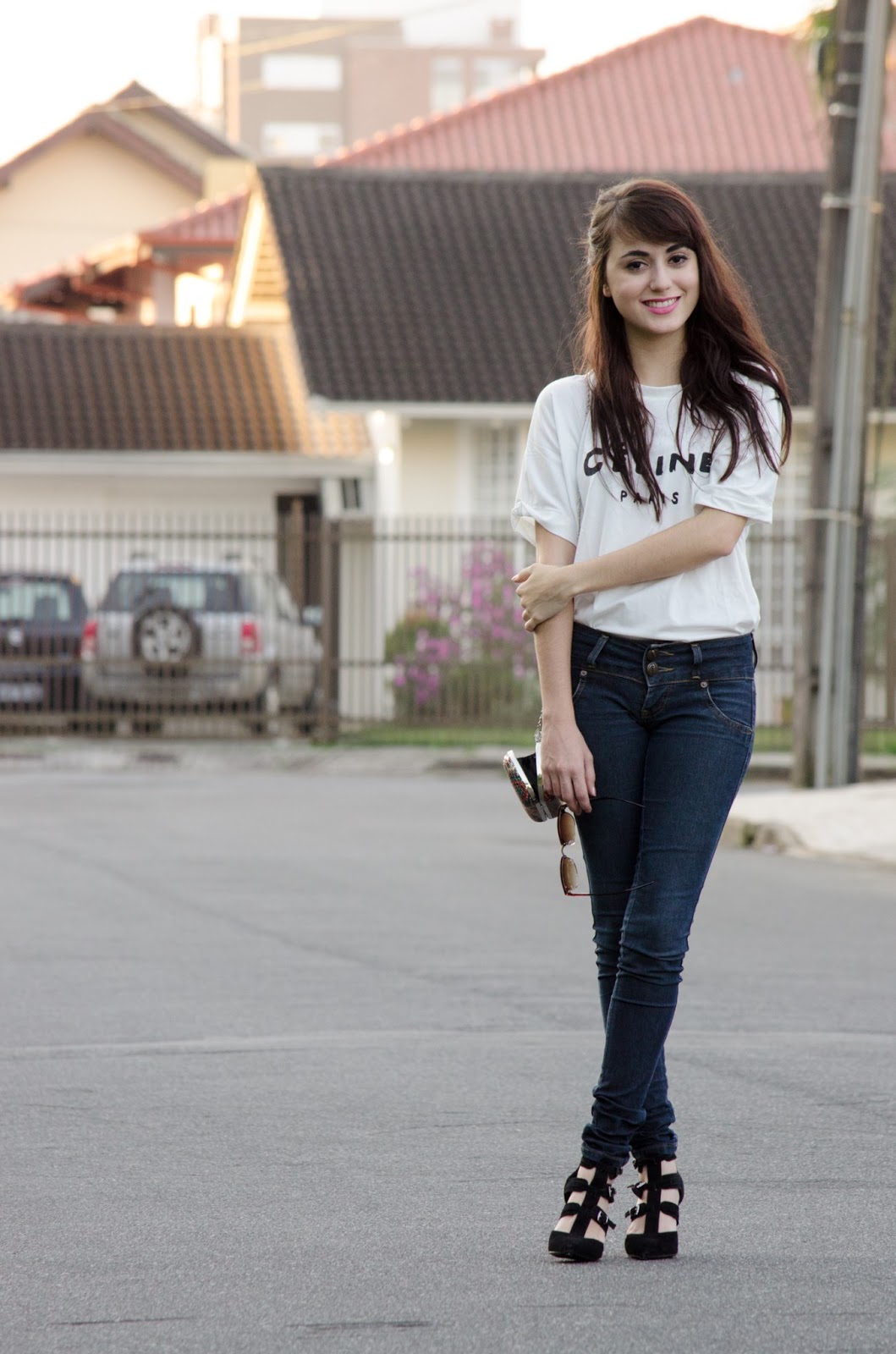 Adoro usar saias e vestidos, por isso estou aproveitando esses últimos dias antes do inverno rigoroso chegar para deixar as pernocas de fora! Optei pela t-shirt básica para deixar o look mais casual!