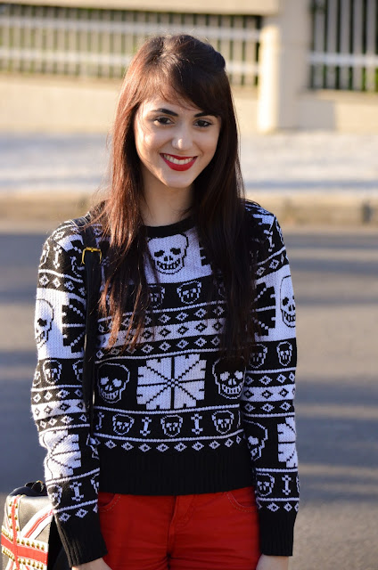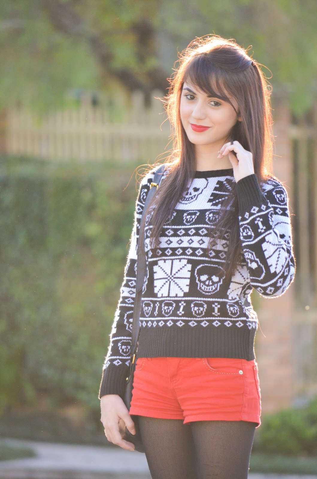 Eu Usei: Suéter de Caveiras (Renner), Short Vermelho (Blue Steel – Renner), Bolsa UK (Loja Lado B clique aqui), Sapatos (Sexy Calçados clique aqui).