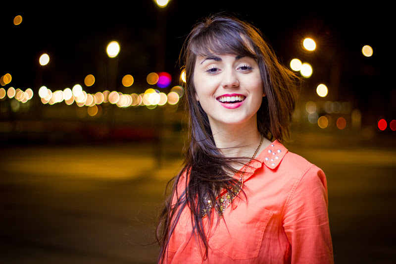 Eu usei: Camisa laranja Neon – Renner, Short Jeans desbotado com tachas – Renner, Sandália – Bottero, Bolsa – Charme Dalu, Colar de Spikes (comprei numa loja de acessórios no shopping Garten, aqui em Joinville).