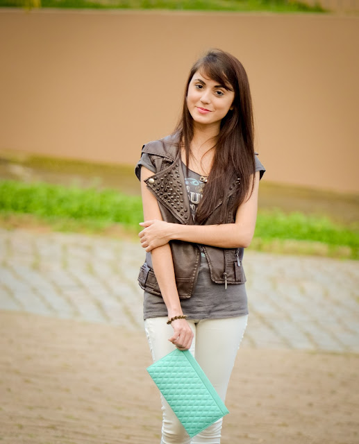 Na segunda versão desse look, escolhi um casaquinho de lã com detalhes de brilho (Blue Steel) para os dias mais fresquinhos!