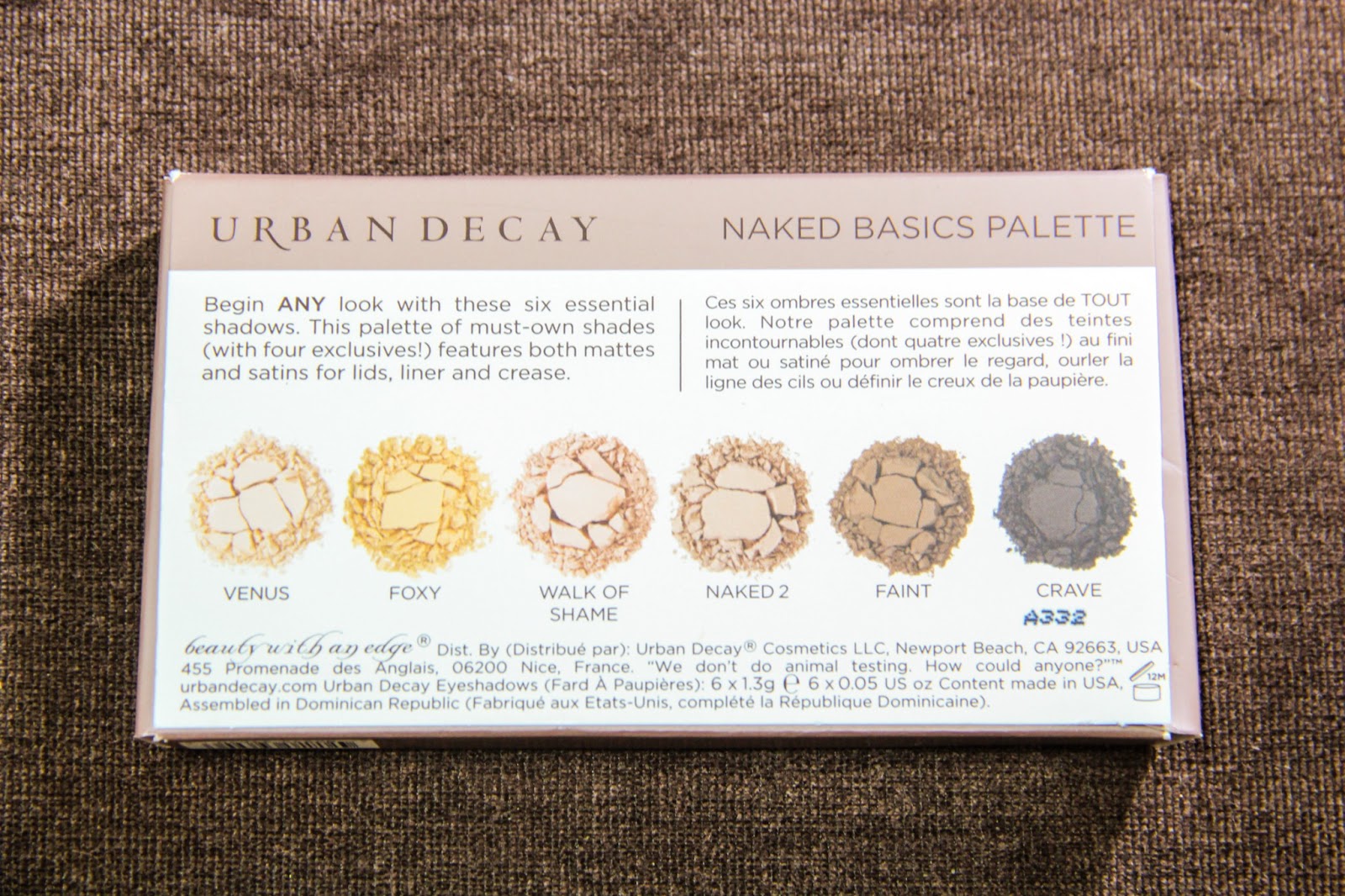 A paleta possui 6 sombras, sendo que 2 delas (Foxy e Walk of Shame) já existiam e as outras 4 (Venus, Naked 2, Faint e Crave) são exclusividade da Naked Basics.