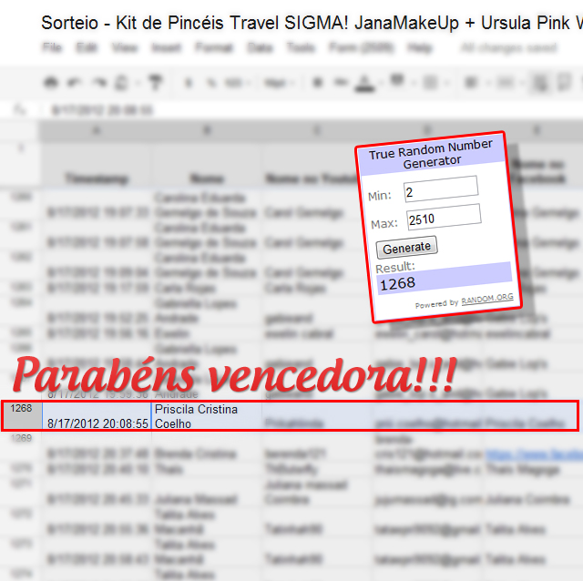 Infelizmente a vencedora não apareceu e nem respondeu ao meu e-mail, por este motivo o resultado foi refeito, confira: